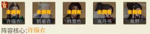 1、阵容:许缁衣+鹤着衣+韩雪色+黄缨+谈剑笏