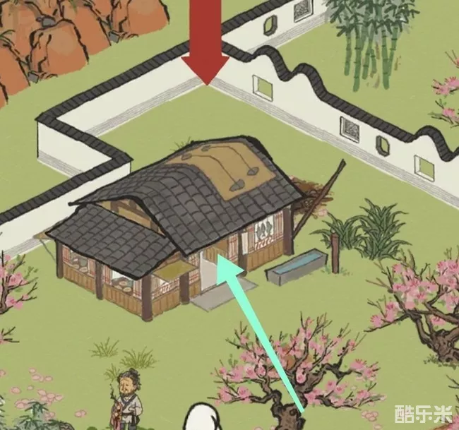 1、在桃花坞副本中,在如图所示位置找到店铺。