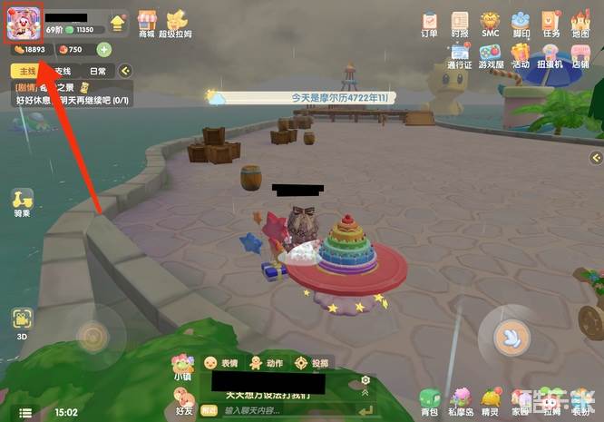 1、玩家进入游戏后,点击左上角摩尔头像,进入个人页面中。