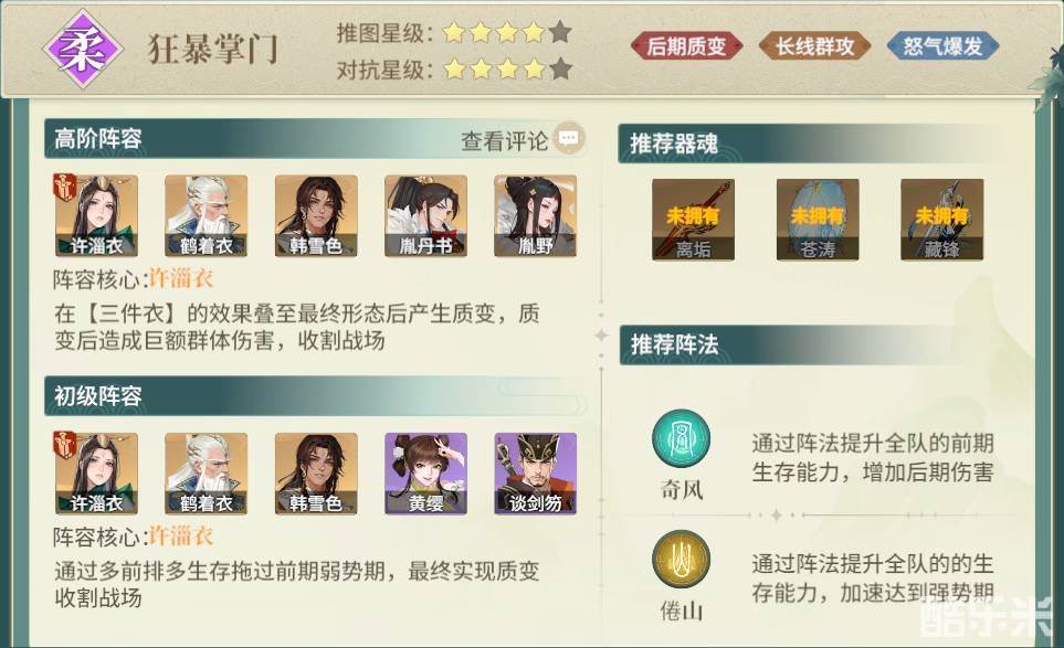 江湖如梦狂暴掌门队强度怎么样?作为一款非常好玩的武侠回合制游戏,一个强力的阵容是非常重要的,而狂暴掌门队就是一个非常不错的阵容玩法。恰好酷乐米小编就知道江湖如梦狂暴掌门队究竟该怎么玩,感兴趣的话就跟着酷乐米小编一起来看看吧!