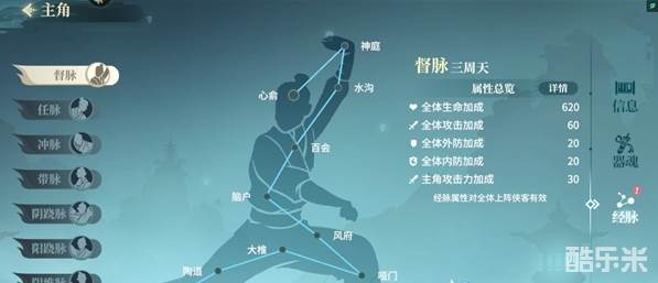 7、器魂培养到一定程度,进入经脉,点脉增强角色属性加成。