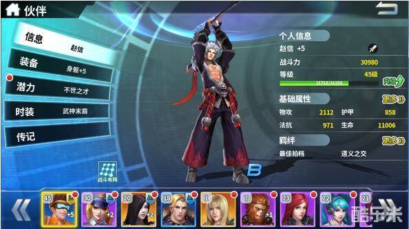 2、 这里也是进入伙伴培养系统的入口,包括装备系统,潜力系统,时装系统以及伙伴传记。
