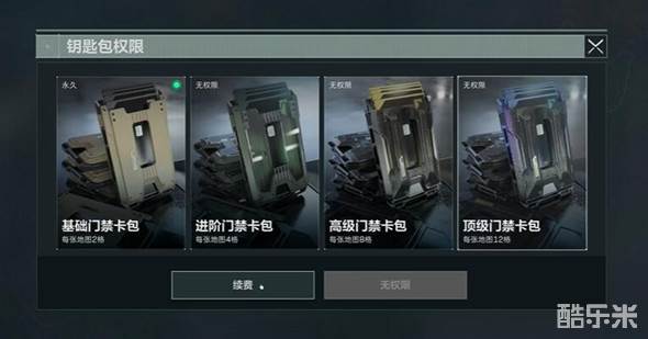 1、进入钥匙包权限界面,点击后面两个门禁卡包,再点击续费。