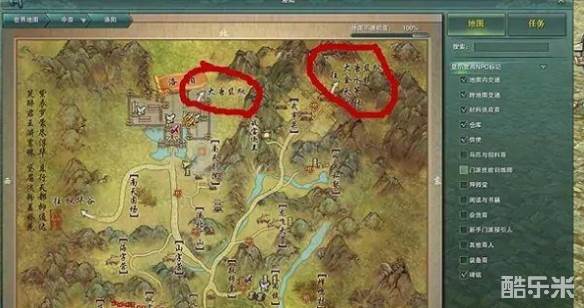 1、玩家进入游戏后先神行来到地图中洛阳的位置。