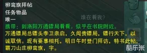 2、与其对话吃掉烤鱼后获得道具【柳鸾旗拜帖】直接触发奇遇【北行镖】;