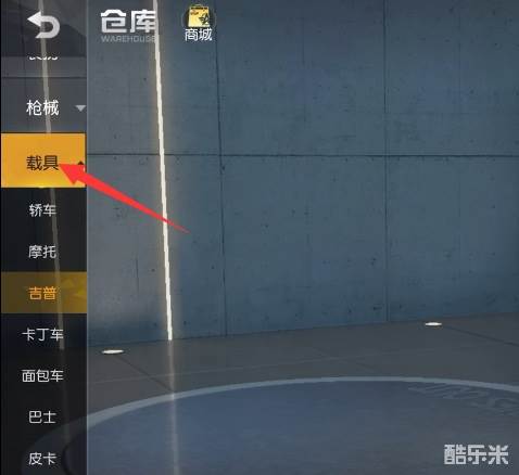 2、进入游戏仓库后,在左侧点击载具栏,在这里可以看到自己拥有的汽车皮肤。