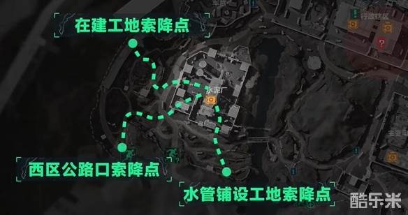 1、西侧水泥厂外围的三个索降点的玩家都直接冲水泥厂就行,距离近、资源多。