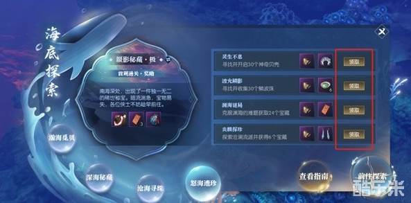 右下角点开珊瑚,在“海底探索”页面将四个奖励领了,右键使用掉4个碎片