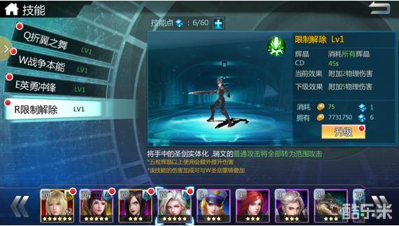 被动:QA连段可以获得圣剑辉晶,最多可以获得15层。辉晶层数越高,瑞萌萌伤害越高,开大持续时间越久。(精通能使Q伤害得到额外提高)