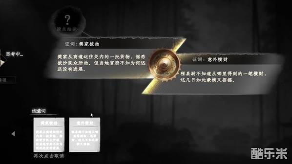 2、然后进行推理,根据樊家被劫+意外横财,得出结论程县尉与沙鼠勾结。