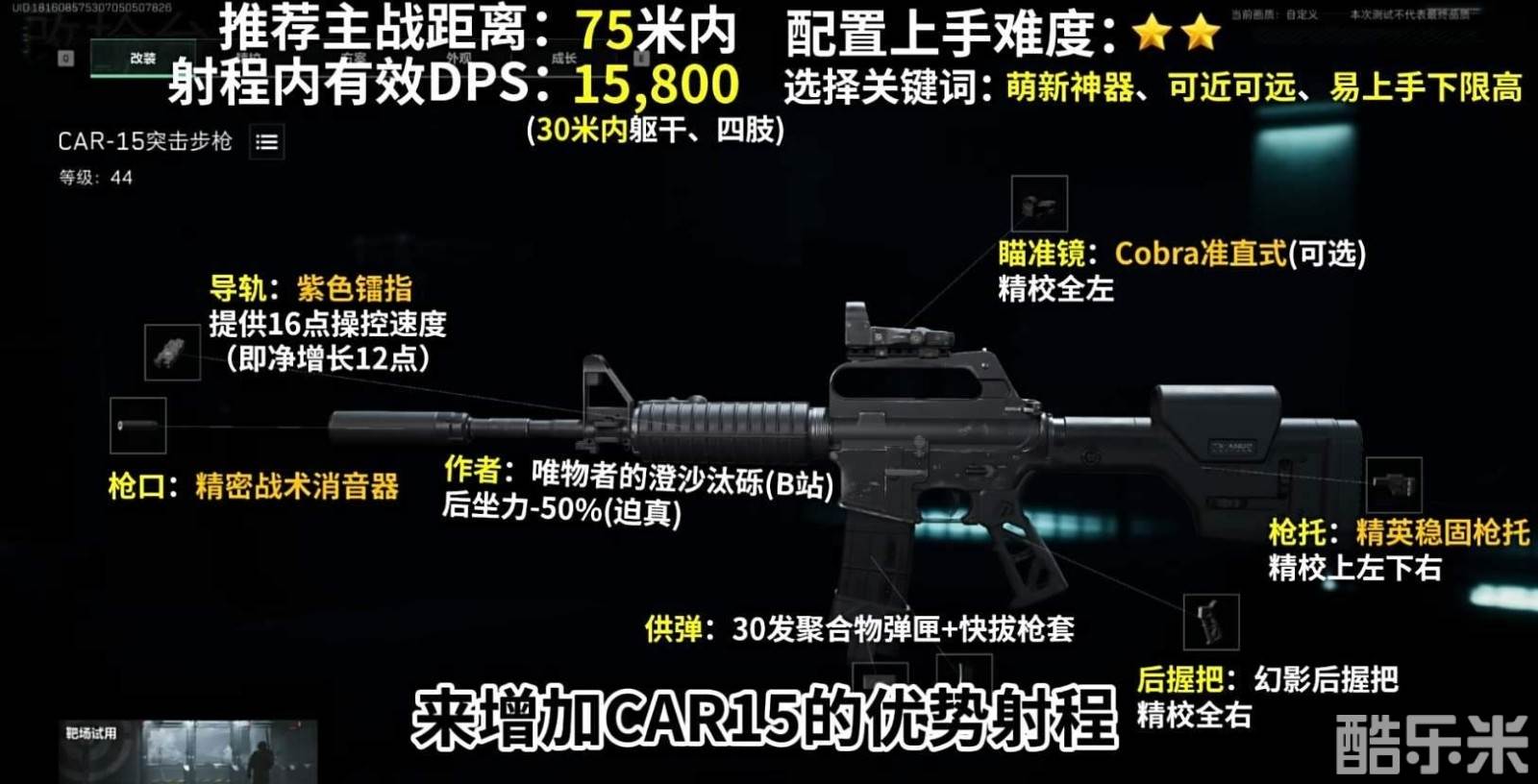 三角洲行动里面有很多的武器,今天酷乐米小编给大家带来的是游戏里面的car15改装方案,还有很多的小伙伴不清楚car15怎么改,那么下面就是相关的内容,下面和酷乐米小编一起来看看吧