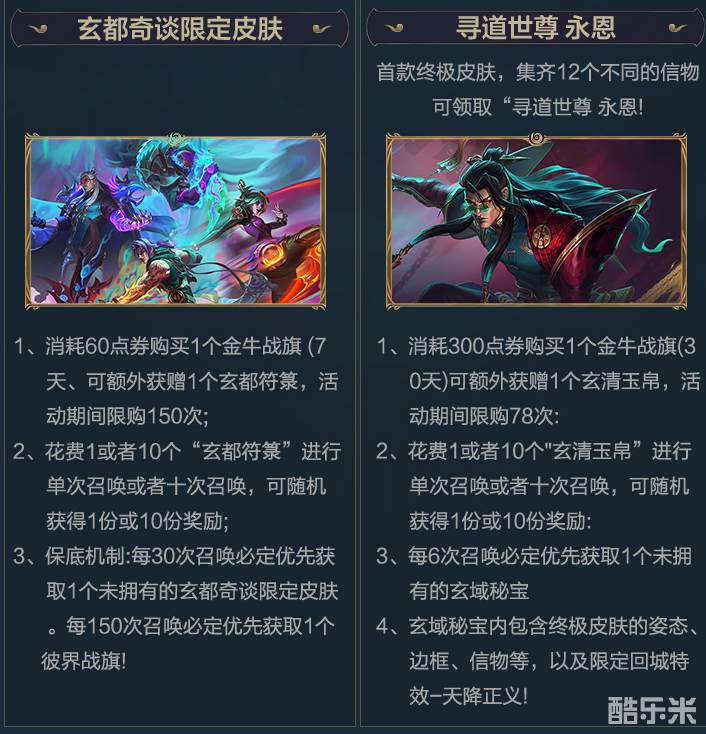 英雄联盟手游玄都奇谈系列皮肤怎么获取?在英雄联盟手游中官方推出了最新的玄都奇谈系列,并且在本次系列中给玩家带来了很多皮肤以及双形态皮肤,下面酷乐米小编就给大家带来英雄联盟手游玄都奇谈系列皮肤获取方法介绍,有需要的小伙伴不要错过,快来看看吧!