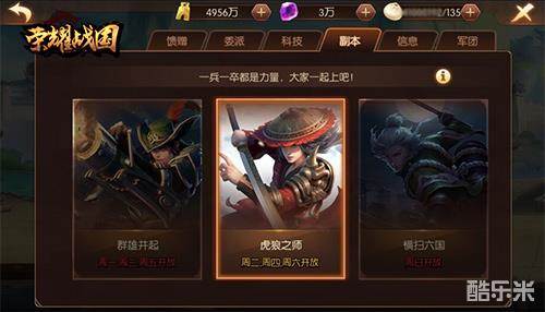 军团作为诸侯联盟,拥有独立的副本、科技、委派任务等设定。军团副本有群雄并起、虎狼之师、横扫六国三大副本,三大副本贯穿一周,集合军团成员的力量才可挑战,可想难度之高。