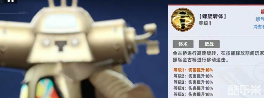 第1个角色技能螺旋转体,金古桥进行高速旋转,在技能释放期间可以自由进行操作,包括进行移动追击等,该技能伤害比较高,而且使用起来简单,对方近身之后就可以直接发动,但没有其他附加效果,冷却时间10秒钟。第2个技能金古桥飞扑,向前方进行突击,命中敌人后追加高空扑压。该技能就有一定的位移效果,而且伤害也比较突出,最重要的是可以和很多连招搭配起来使用。例如12技能组成小连招,就可以给对方造成很大的伤害。