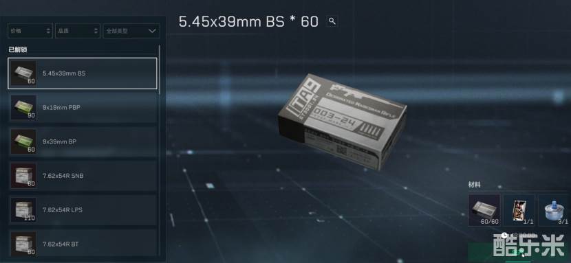 其中前2种型号弹药可在战术部门或交易行中购买,后3种型号弹药除在交易行中可以直接购买外,也有其他获取途径。