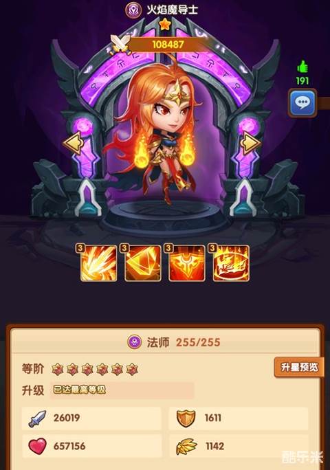 牛头黑锋站稳前排,火焰魔导士提供燃烧,阵容核心女爵提供控制和强力输出,卡琳娜和奥赛隆提供辅助和治疗支持