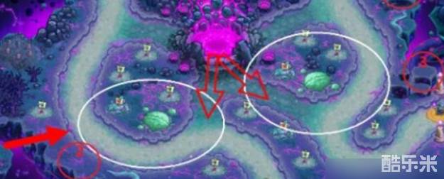 2.玩家可以左侧生成走左侧路线,右侧生成走右侧路线,可以建造兵营和AOE伤害的塔来阻挡眼睛进入。