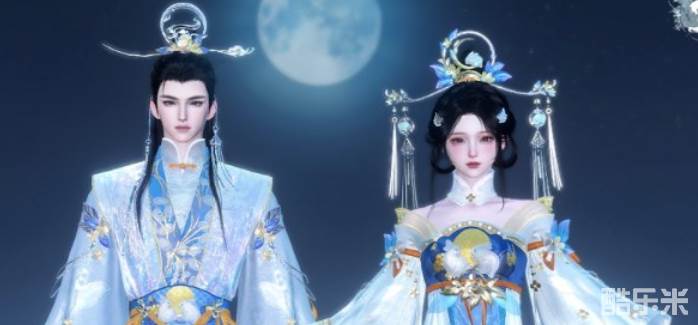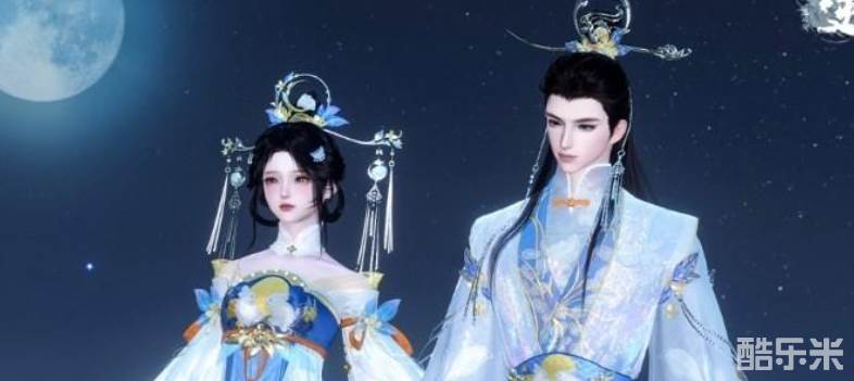 男款长袖飘飘然,仅限飘逸脱俗,腰间还有饰物点缀,犹如满月下绽放的桂花。细丝绦和流苏轻垂并随风摇曳。女款的则尽显温柔婉约,裙摆上印着桂花与桂叶,胸前更有双兔拜月的景象,圆圆的月亮与憨态可掬的玉兔,为玩家共绘一副中秋团圆的绮丽画卷。