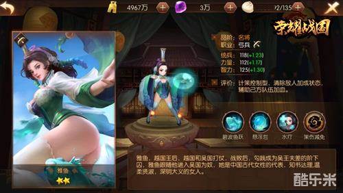 最后编辑于8年前乱世佳人,更加夺目!策略攻防手游《荣耀战国》七国争雄在即,越国美女雅鱼也化身一名武将,其拥有什么样技能呢?下面就来抢先一览!
