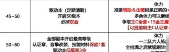 主要任务:深化主力配队的养成,提升角色和武器的等级、技能等。