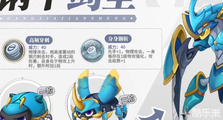 钢甲剑圣起初由钢铁虫进化而来,想获取该精灵。就得捕捉钢甲虫并一步步进化,之后便会进化成圣甲虫。再从圣甲虫进化至钢甲剑圣,他的一身盔甲十分威武强大,特别是双手镶嵌着锋利的刀刃
