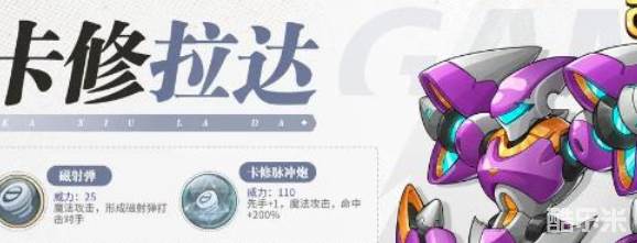 卡修拉达是钢系,拥有飞行能力,会被投掷到各种星球上面收集信息,它的第一个技能在释放后会形成磁射弹打击对手,它的绝招可以让自身的命中提升到200%。