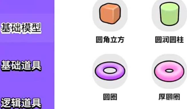 进入地图创建界面以后,可以看到有三种不同的分类,分别是基础模型、基础道具和逻辑道具,要注意的是,无论是多好看的装饰和道具,都必须建立在底层模型上,可以在模型里选择自己想构建的底座,可以提前构思一下整个地图的大致景观,或者画一个简易的构造图,然后再从相应的位置放置好模型就可以了,在搭建的时候可以发挥想象力,比如想做一个摇椅,就可以用到1/8碗这个模型,拥有发散的思维是做好一张地图必备的能力。