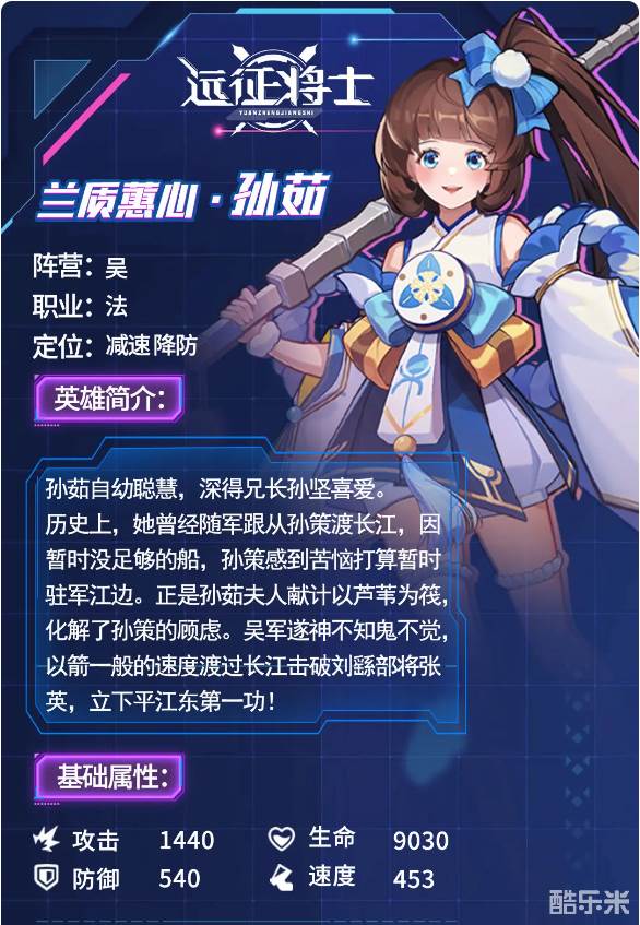 远征将士是一款十分火爆的手游,其中游戏中有众多三国角色,不少小伙伴想知道其中的孙茹怎么样,下面酷乐米小编为大家带来了孙茹的介绍,希望对感兴趣的玩家有所帮助,大家一起来看看吧。