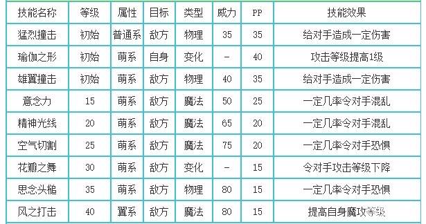 魔翼鸟物攻配招推荐:思念头槌+花瓣之舞+雄翼撞击+瑜伽之形