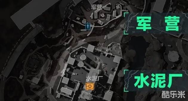 这张地图是危险行动玩法里面的一个地图,也是接触会非常多的一张地图,整个地图里面地势就是东西高,但是南部比较低,山体的中央是一个分界线,大致可以分成东,西,北三个区域。想必大家重点关注的就是物资分布情况了,在西边有两个比较主要的资源区域,就是军营以及水泥厂。前者里面固定物资点不是很多,大概是五个,工具材料以及一些电子产品都是里面可以搜出来的;而后者的物资会多一些,探索点有19个,主要就在主楼里面去搜就行了。