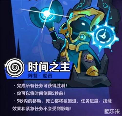 时间之主是太空杀中最强的角色之一,使用技能后能够回退五秒的时间,让所有的玩家恢复到五秒之前的状态。这使得他们可以有效地拖延时间,在游戏中起到很大的作用。