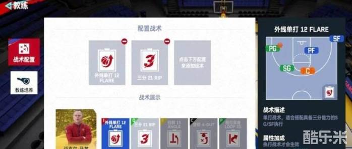 低星的马龙便可以有Q系列的三分战术以及F系列的挡拆战术,这两种战术搭配上库里的三分投射能力都能打出非凡的赛场表现。