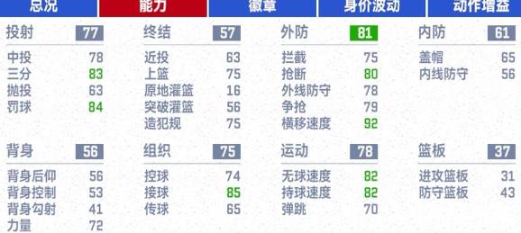 这个球员以稳定的三分投篮著称,是外线的重要得分手。在游戏中,他的三分属性较高,可以达到85分甚至更高,他能够在外线为球队提供强大的火力支援,无论是接球就投还是通过跑位创造出的投篮机会,他都能保持较高的命中率。
