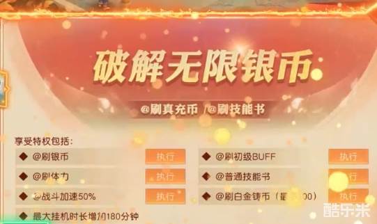 GM破解:这是游戏宣传重点,当然也是福利最好的地方,创角进入游戏后,会有一些强制点击引导,但引导的间隙有机会首先将角色在半路站停,注意这也是一个快速升级的技巧。站停后没有强制你点击,这时候打开界面上的"GM后台",进入GM福利界面,这有一个创角就送的破解版福利,点开后有很多可执行的GM指令,前期必点这2项:@战斗加速50%.刷初级BUFF。这个能让你更快通过战斗,先人一步。