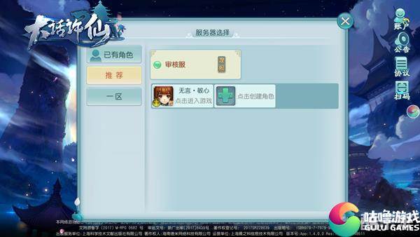 输入账号密码之后即可选择服务器,推荐列表一般是最新服务器。大话许仙每个服务器玩家可以创建3个角色。