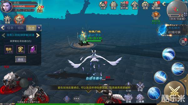 进入剑池后,自动获取任务,开始任务采掘剑池,提交剑意。