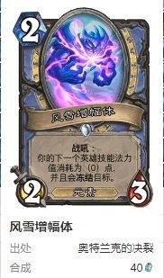 卡组中独一无二的奥秘牌,提供8点护甲,极为实用。