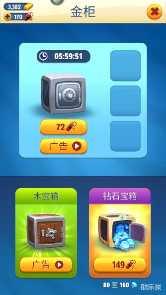 其通过广告来获取金砖或者是钻石的奖励。但不管是什么奖励或者奖励的数量,都是根据系统随机产生的。视频广告的时间都比较短,玩家可以多参与几次,尝试获得更多的金币和钻石。另外,金柜里面也能够产出钻石资源哦。总而言之,钻石的获取难度会相对比较大且随机性强,需要小伙伴们有足够的毅力和耐心哟。