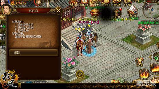转国的方法是在本国地图点击皇宫,然后在左上角的位置点击“移”,自动寻路或者飞过去。找到移民官,然后选择想要转的国家。不满足强国转弱国条件的,玩家需要准备好50两金子。