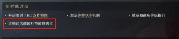 需要注意的是,武勋商店中的兵符道具需要到霸业阶段”势如破竹”时才解锁,由于兵符获取数量较少且消耗的兵符仅可通过重置武将操作归还,玩家选择兵种附加时应该慎重考虑。