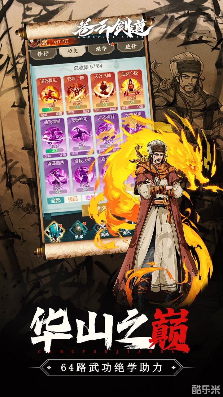4、64种武功搭配各路侠客助力,踏足江湖武侠论剑。