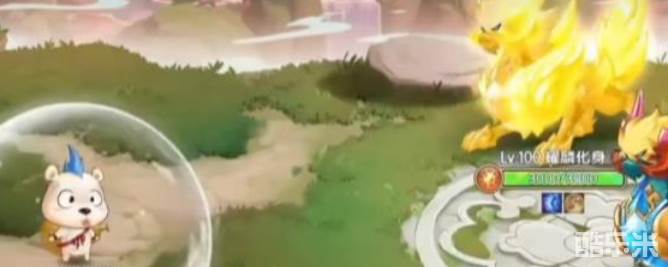 主战精灵在它上场之后会获得哈尼熊的仪式效果,自身的全属性差不多会翻15倍,这个倍率下属性还克制该boss,在这种情况下就可以顶着伤害单人击杀boss和它的分身了。