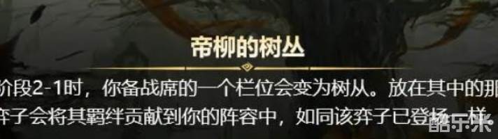 城邦羁绊还是原汁原味,在每一局开局的时候,玩家共同投票去选择当前的城邦,每种城邦都有不同的效果,比如艾欧尼亚,可能出现的城邦有“帝国的从柳”,或者“均衡寺院”,前者可以让备战席的一个格子变成树丛,放在里面的棋子的羁绊与场上的阵容是共享的。