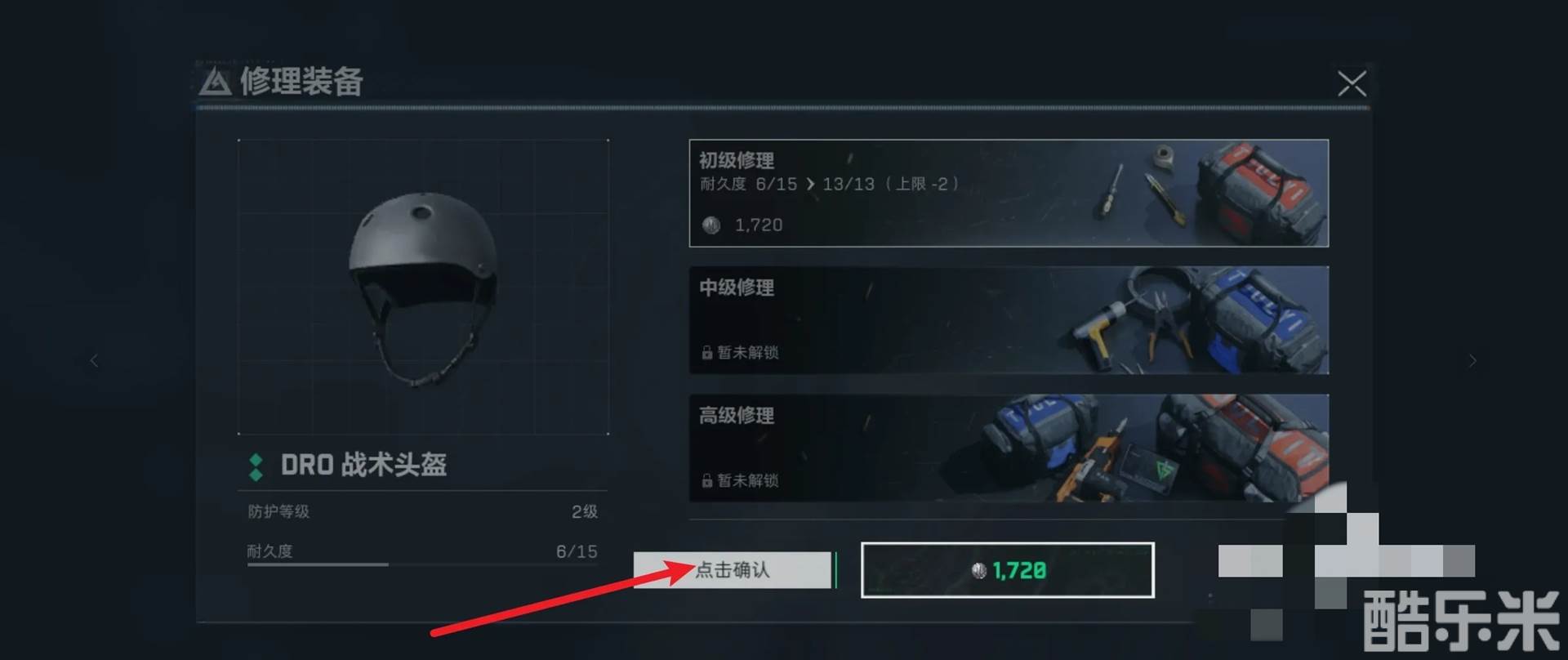 第三步:修理完装备头盔后,【点击确认】图标即可成功维修头盔。