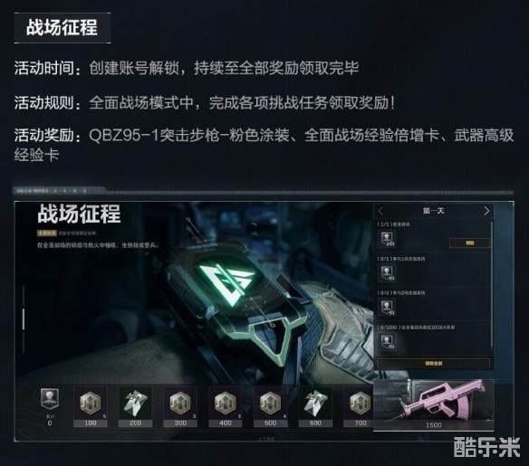 奖励:QBZ95-1突击步枪-粉色涂装、全面战场经验倍增卡、武器高级经验卡