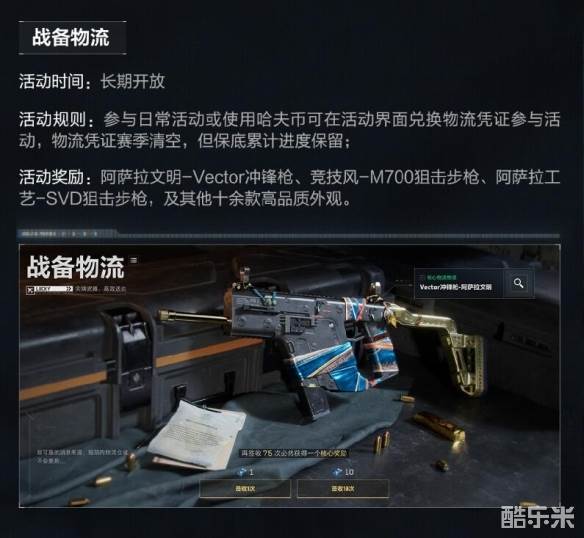 奖励:阿萨拉文明-Vector冲锋枪、竞技风-M700狙击步枪、阿萨拉工艺-SVD狙击步枪,及其他十余款高品质外观。