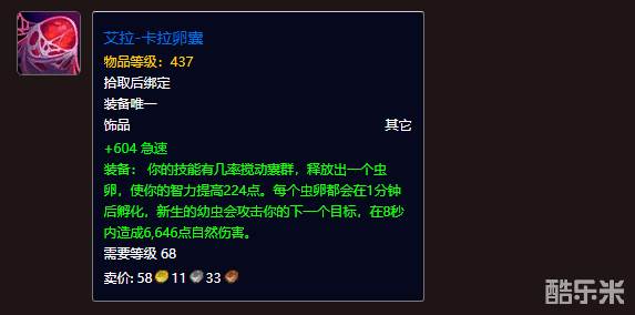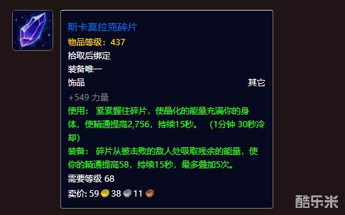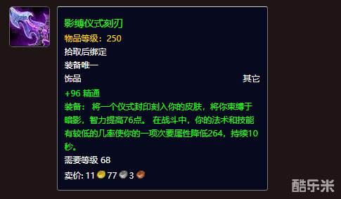 这是一件优质的主动饰品,提供精通增益,并在击败敌人后进一步增加精通,非常适合多人副本和需要击杀小怪的战斗。