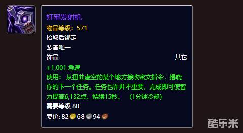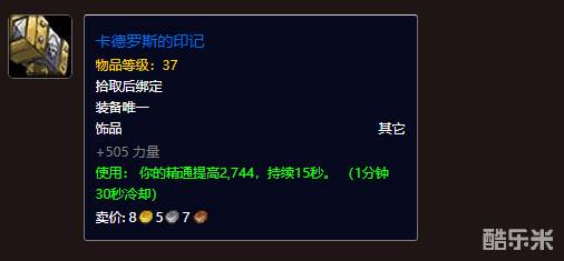提供一个较为常规的主动触发精通饰品,冷却时间为1分30秒,提供适量的精通增益。
