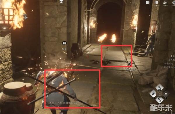 3、下楼后,使用火箭点燃灯箱,即可照亮前方的道路。