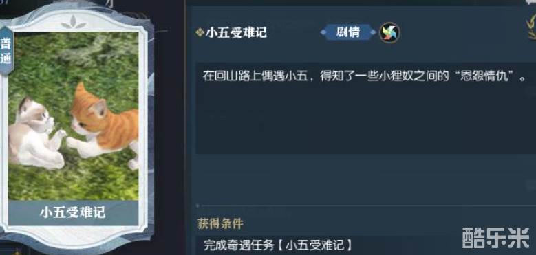 逆水寒中有很多奇遇等着大家去触发,完成后可以获得一些奖励,不过奇遇触发有一定的难度,比如奇遇小五受难记狸奴之争,那么逆水寒小五受难记狸奴之争奇遇怎么做?下面酷乐米小编给大家带来逆水寒小五受难记狸奴之争奇遇攻略。